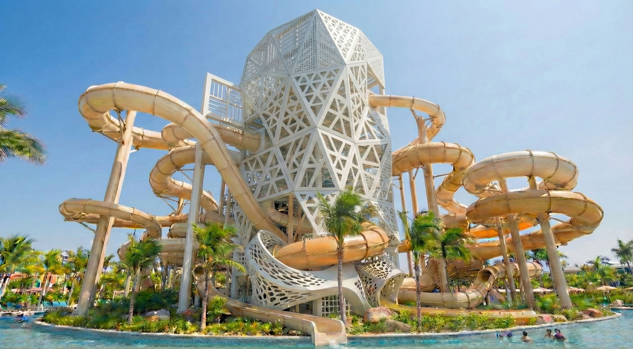 Des structures enveloppantes légères, modulaires et à montage rapide : une nouvelle proposition du Département de Design d’Amusement Logic. Objectif : donner une nouvelle vie et une apparence spectaculaire aux tours d’accès aux toboggans existants dans les parcs aquatiques. De simples dispositifs fonctionnels, les escaliers deviennent des phares visuels et narratifs qui distinguent le parc aquatique de tout autre.