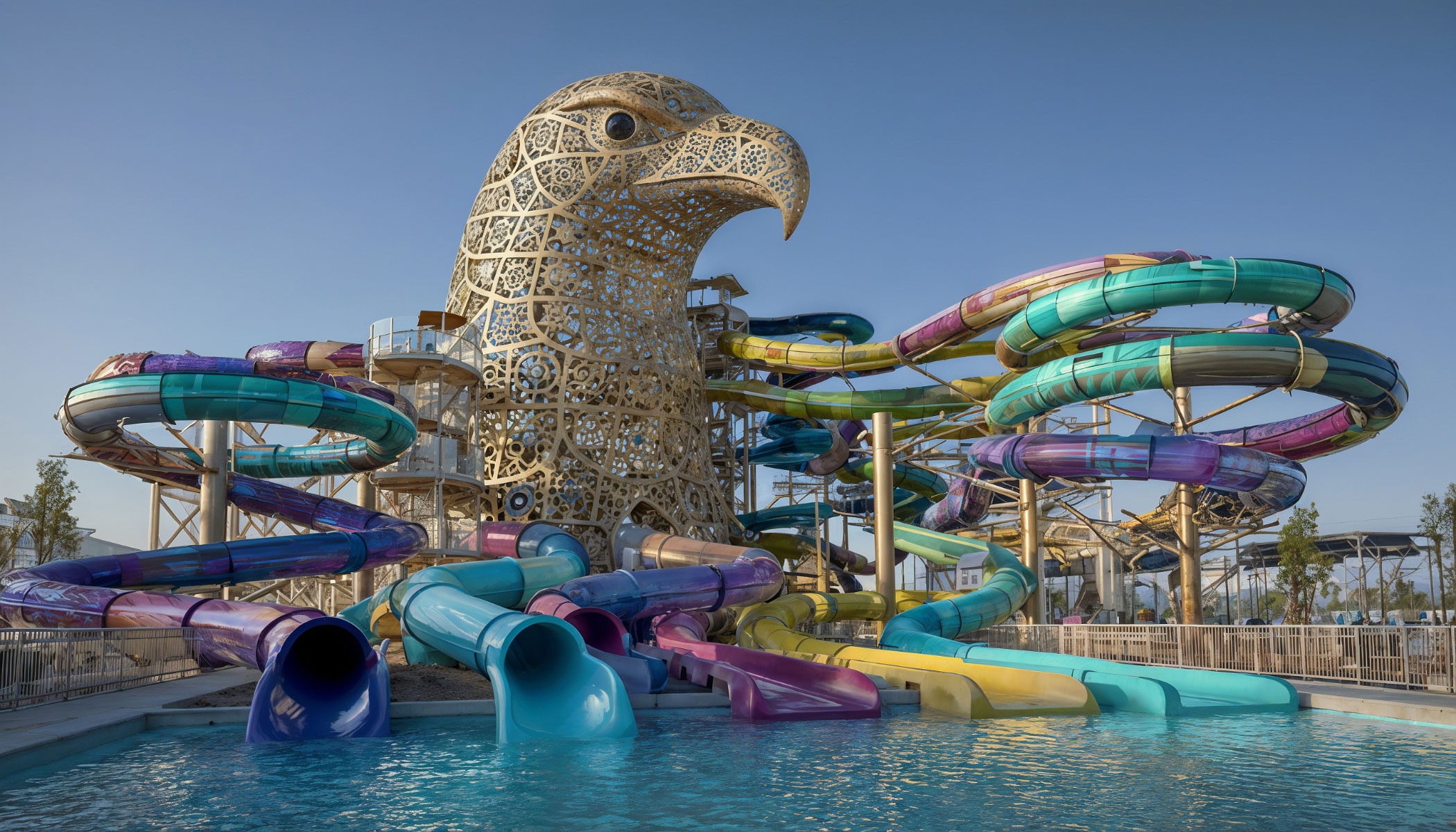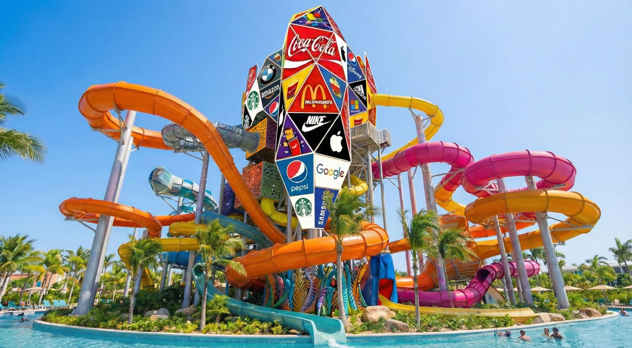 Il ne s’agit pas seulement d’une intervention esthétique d’amélioration : la tour d’accès aux toboggans du parc aquatique se transforme en une pièce emblématique qui contribue à sa rentabilité. Comment ? Tout d’abord, les structures enveloppantes servent de renouvellement saisonnier des installations du parc, sans coût excessif, et incitent clients et visiteurs à revenir ; de la même manière, elles favorisent leur visibilité sur les réseaux sociaux, en les rendant beaucoup plus photogéniques ; enfin, elles servent de support à la publicité statique, que ce soit via des parrainages corporatifs ou toute autre modalité publicitaire.
