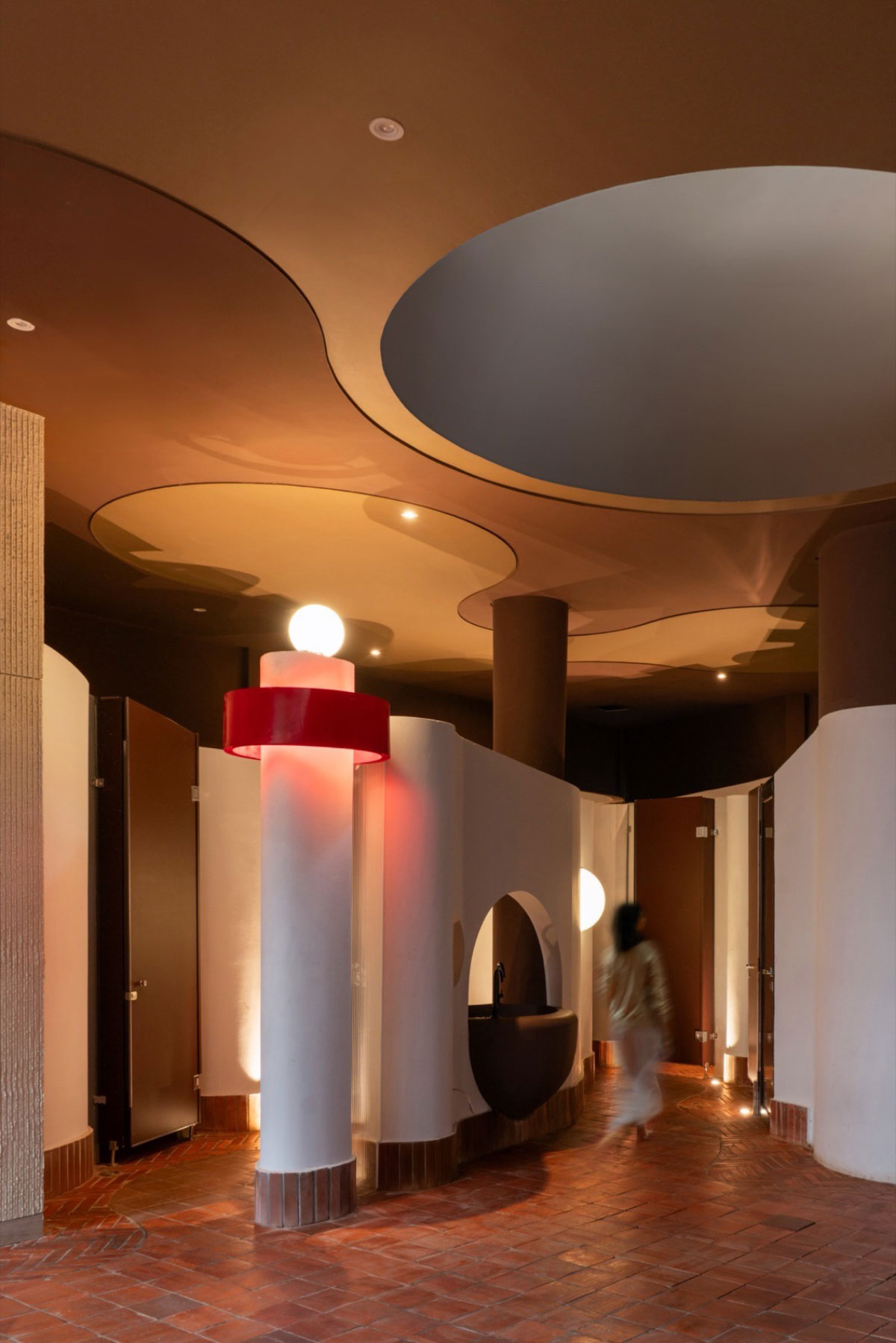 Un autre aspect remarquable du projet réside dans sa matérialité. La claustra ondulante n’est ni en bois ni en métal, mais produite à partir de 4 800 kg de plastique recyclé. Ces déchets sont transformés en 16 800 plaques qui la composent. Au-delà de sa performance technique en tant que mécanisme de contrôle climatique, cet élément fait du bâtiment un message tangible et élégant — et un rappel — destiné à la citoyenneté et aux autorités : les 7 millions de tonnes de plastique non traité produites chaque année en Indonésie peuvent connaître un second acte en architecture.