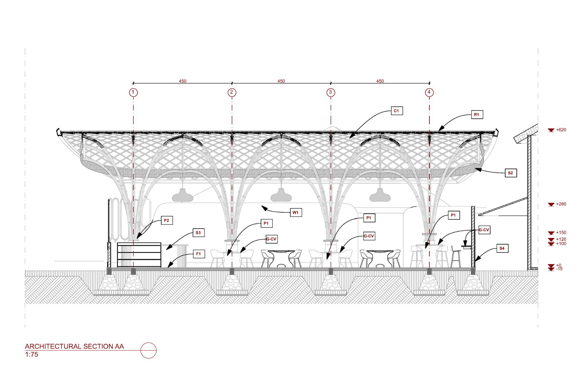 Pour Mizzi, ce qui avait commencé comme une simple option de scolarisation pour ses enfants s’est transformé en un voyage de deux ans pour réaliser le projet architectural du The Living Bridge Co-Learning Centre. Dans un processus d’« auteur partagé », la construction du Living Bridge s’est déroulée parallèlement au calendrier scolaire, de sorte que des étudiants de 15 à 18 ans ont participé à chaque étape de son développement, du design à sa construction finale. Le résultat est une structure composée de plus de 300 pièces de bambou provenant du terrain, traitées avec des techniques avancées de courbure par chaleur et assemblées.