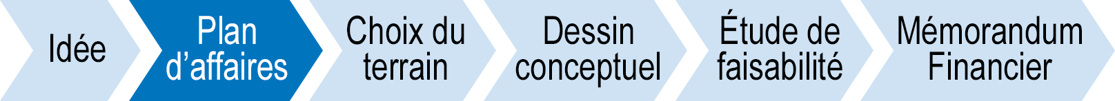 Le plan d’affaires est la façon habituelle de transcrire une idée d’entreprise sur papier, et il est habituellement préparé avant même de sélectionner le terrain ou de développer toute autre documentation de projet. Dans certains cas exceptionnels, le Promoteur a une idée très claire de l’affaire et n’a pas besoin de convaincre quelqu’un d’autre. Mais même dans ce cas, la réflexion sur les éléments clés de l’affaire peut être un exercice qui mérite d’être considéré avant d’engager des investissements.