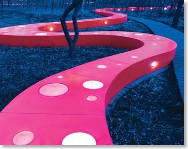6. Ruban rouge au parc Tanghe, Qinhuangdao, Chine, un banc en acier de 300 mètres de largeur.