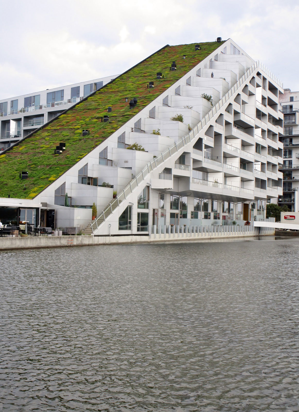 En définitive, il convient de se demander s’il est pertinent de chercher à retenir l’eau et favoriser le développement racinaire sur un bâtiment, ou s’il serait plus judicieux d’évacuer rapidement l’eau vers l’espace public, vers un sol capable de l’absorber, et d’y concentrer les surfaces végétales et la biodiversité. La réponse n’est pas définitive, mais la question mérite d’être posée.