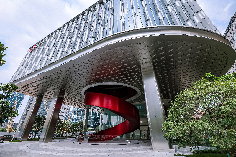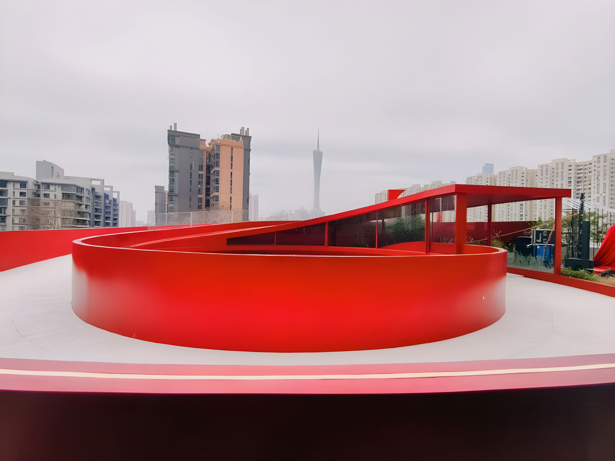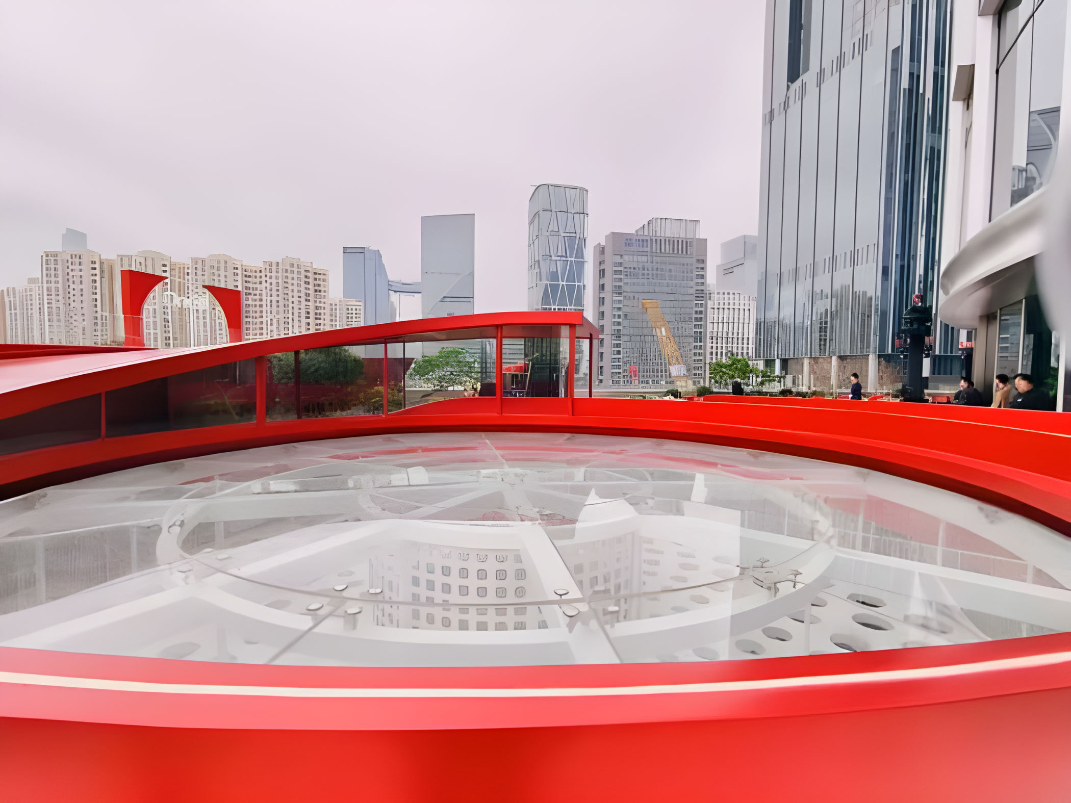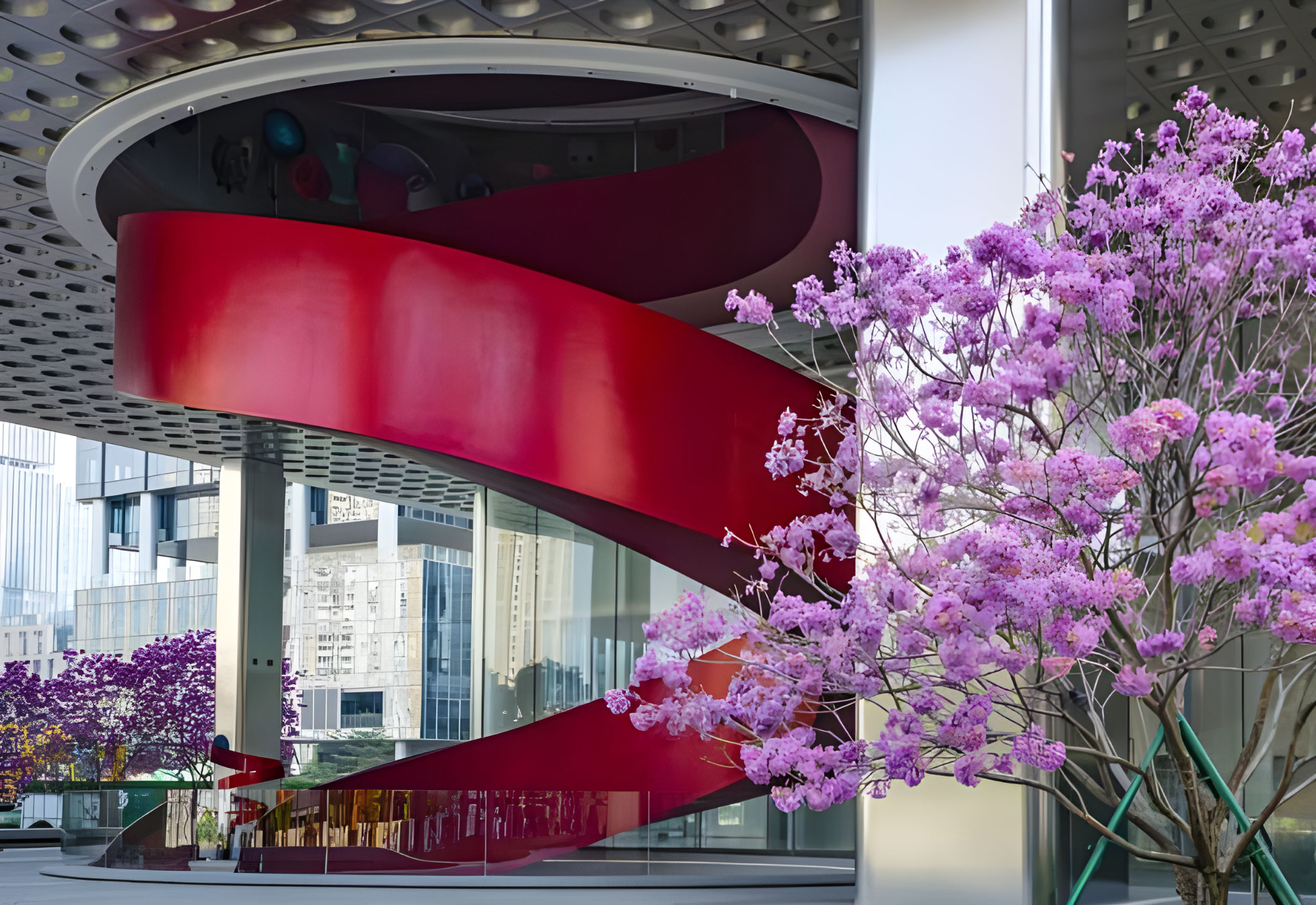 Selon des sources chinoises, la réalisation d’une forme organique aussi complexe a nécessité le recours à l’une des plus grandes entreprises de fabrication d’installations artistiques du sud de la Chine, une entreprise capable d’assurer la précision du cintrage de la structure — tâche qu’une société de construction conventionnelle ne pouvait garantir. Pendant environ un an, les équipes ont assemblé et soudé chaque segment, en respectant scrupuleusement les tolérances, afin de préserver une géométrie parfaite étage après étage.