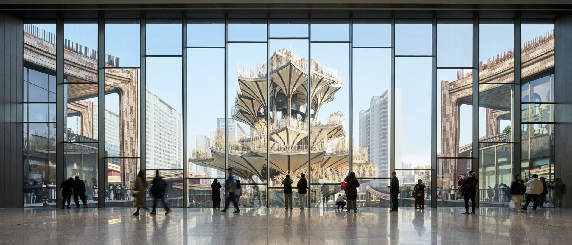 Au sud du centre historique de Xi’an, ville de l’intérieur de la Chine qui conserve plus de 2 000 ans d’histoire — et les célèbres Guerriers de terre cuite — s’ouvre un nouvel espace public. Le studio d’architecture londonien Heatherwick Studio, invité par l’entreprise publique chinoise de développement immobilier China Resources Land, a relevé le défi de concevoir un quartier culturel et commercial moderne. Le résultat est le Xi’an Centre Culture Business District (CCBD), un district qui « combine une plateforme commerciale avec des rues piétonnes, des terrasses et places ouvertes, des bureaux, des appartements, des hébergements, des espaces verts et un parc vertical ». C’est précisément de ce parc vertical dont nous souhaitons vous parler : le Xi’an Tree.